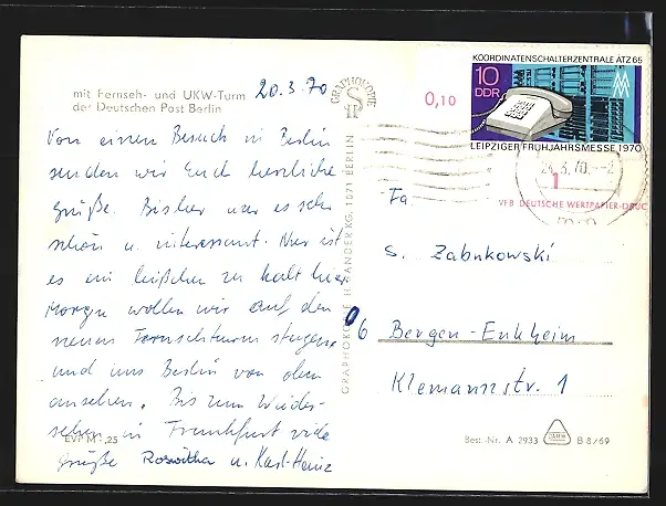 alte Ansichtskarte, gelaufen 1970, Stempelspur, guter Zustand