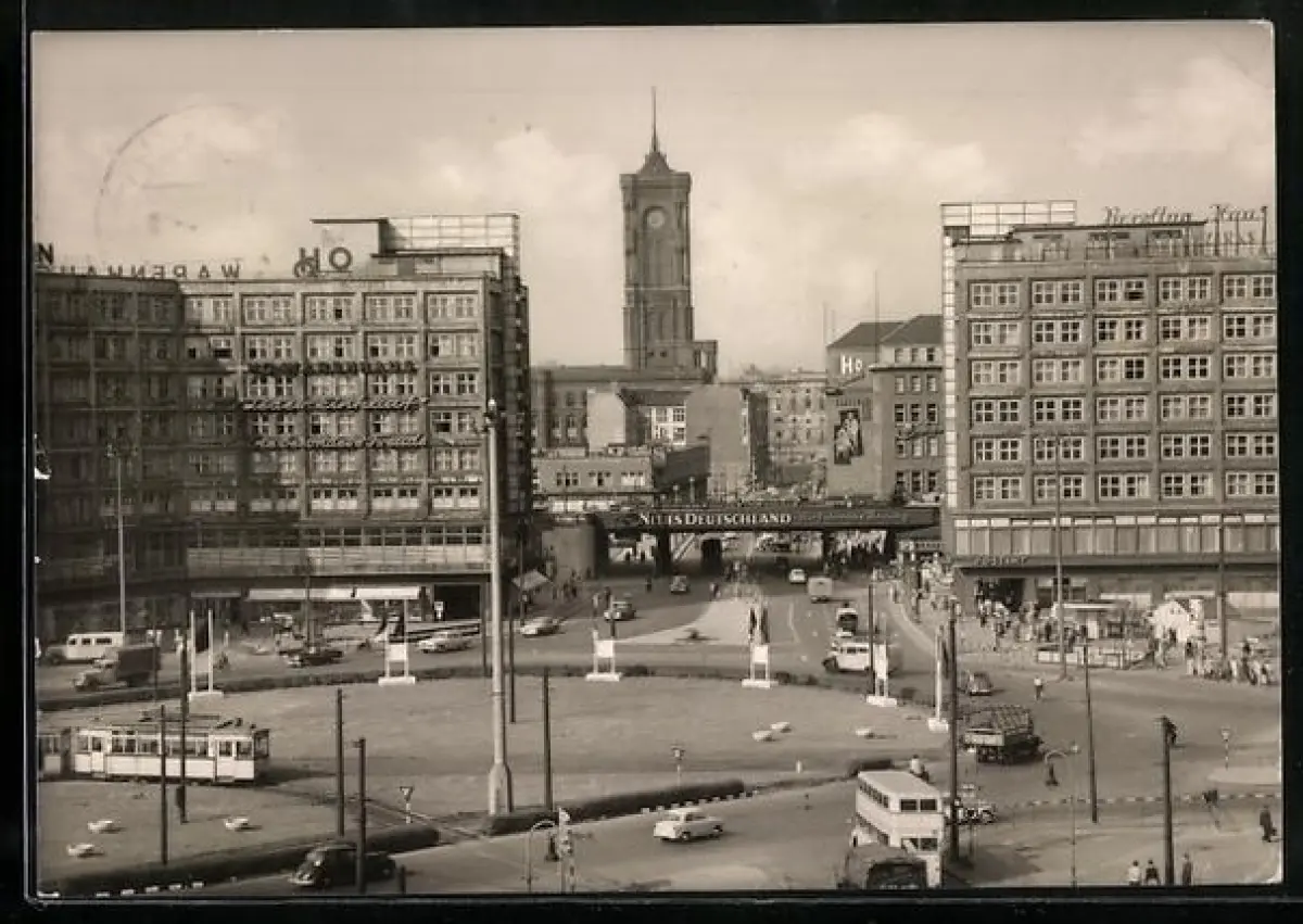 AK Berlin, Alexanderplatz mit Rotem Rathaus, Strassenbahn, 1964