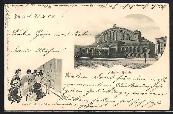 AK Berlin, Anhalter Bahnhof, Passageire auf dem Weg nach Gr.-Lichterfelde