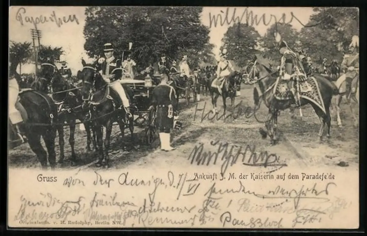 AK Berlin, Ankunft der Kaiserin Auguste Victoria von Preussen auf dem Paradefelde