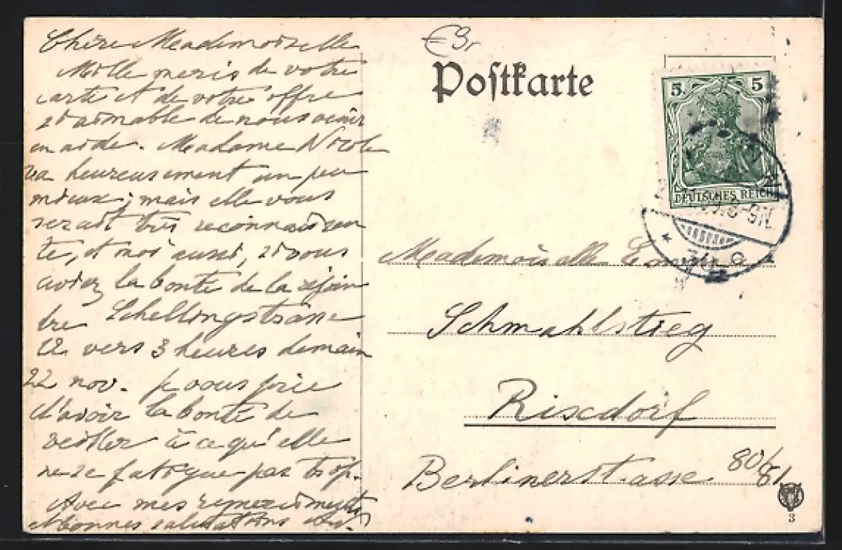 alte Ansichtskarte, gelaufen 1909, Stempelspur, guter Zustand