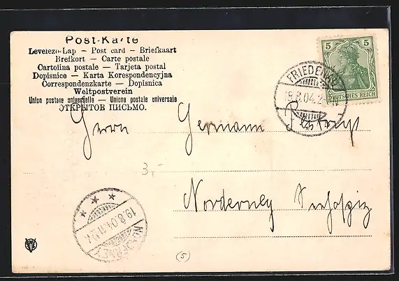 alte Ansichtskarte, gelaufen 1904, guter Zustand