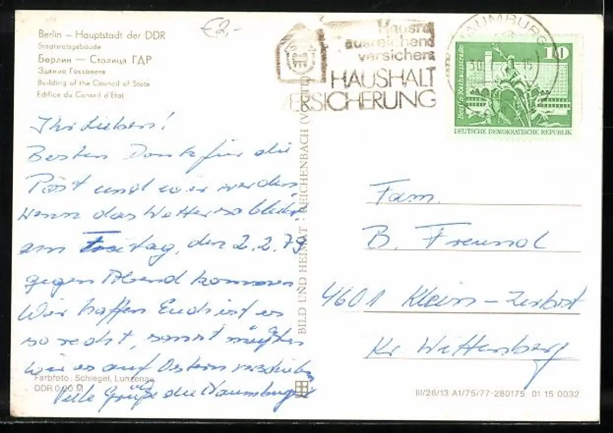gelaufen 1979, Eckknicke li. oben u. re. unten, guter Zustand