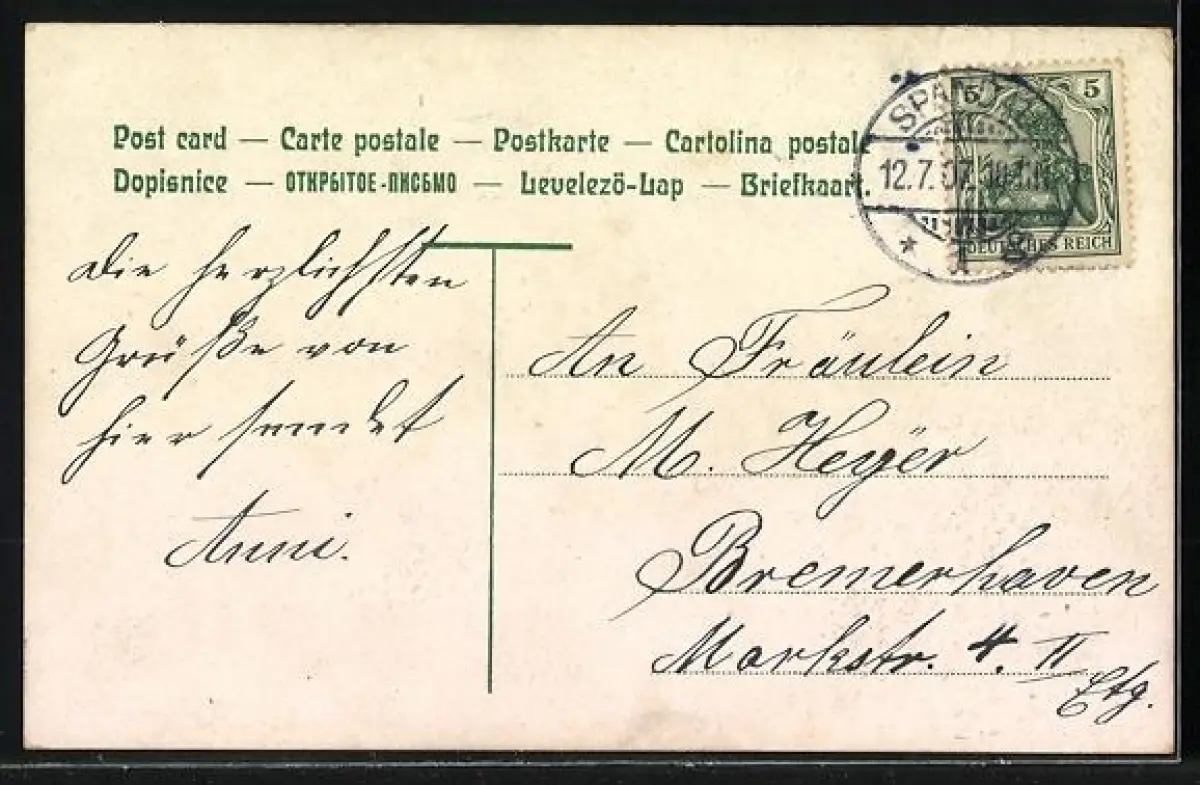 alte Ansichtskarte, gelaufen 1907, guter Zustand