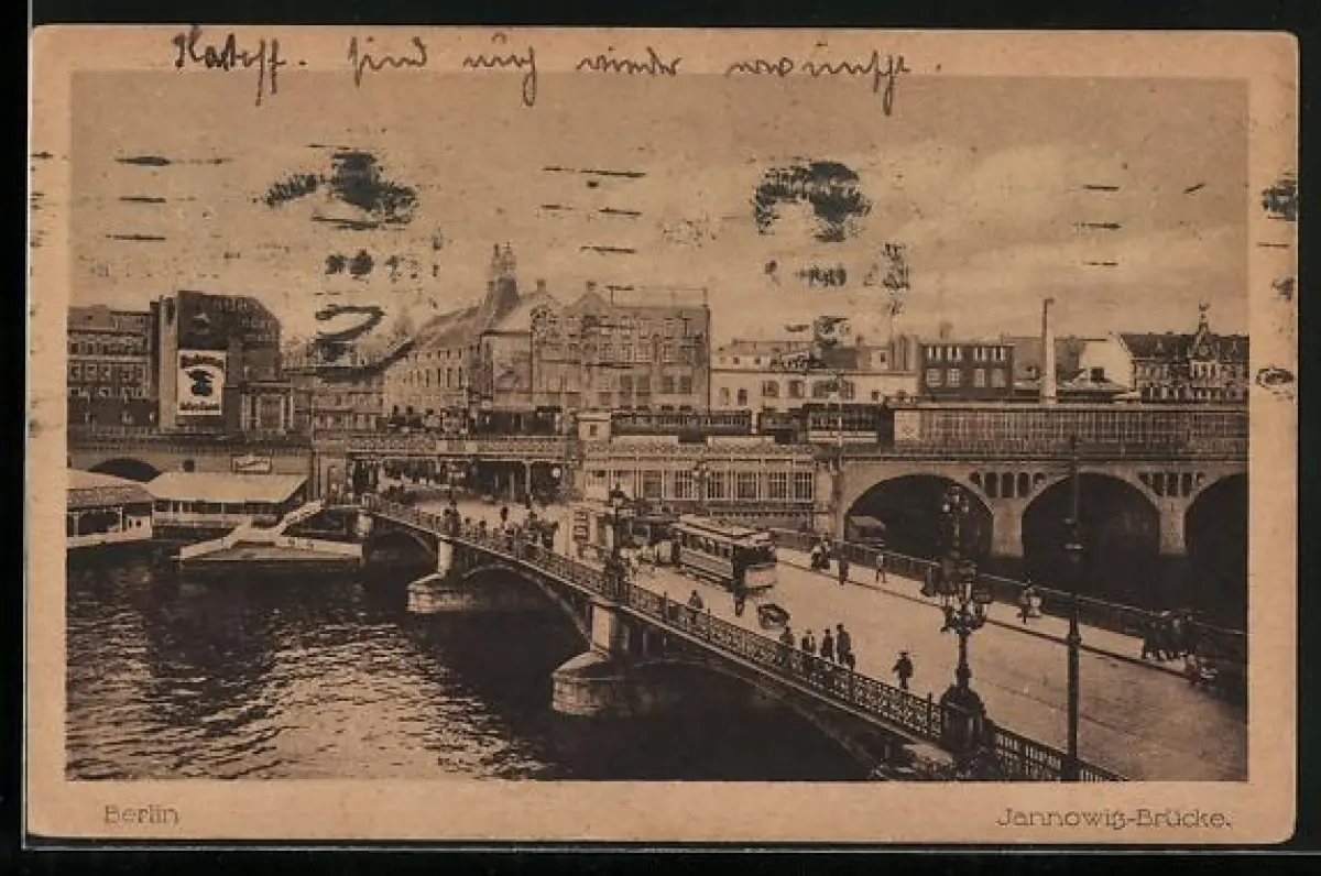 AK Berlin, Blick auf die Jannowitz-Brücke, Strassenbahn