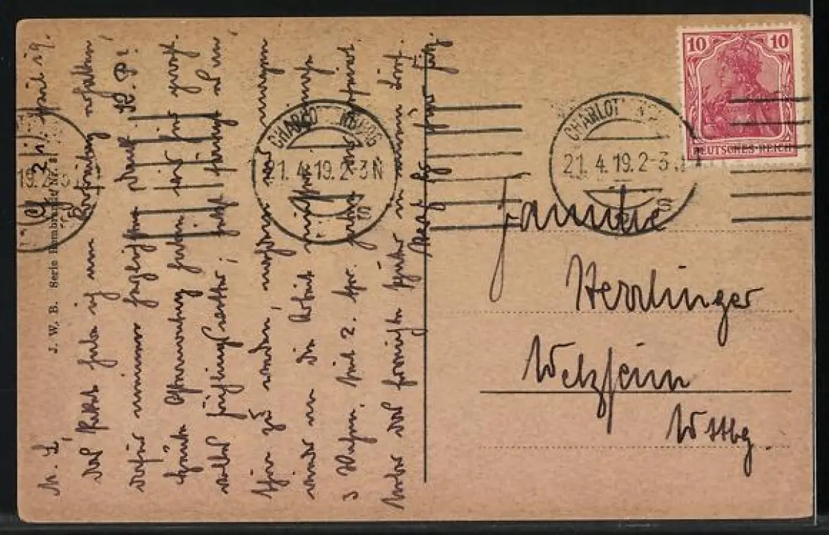 alte Ansichtskarte, gelaufen 1919, Stempelspur, guter Zustand