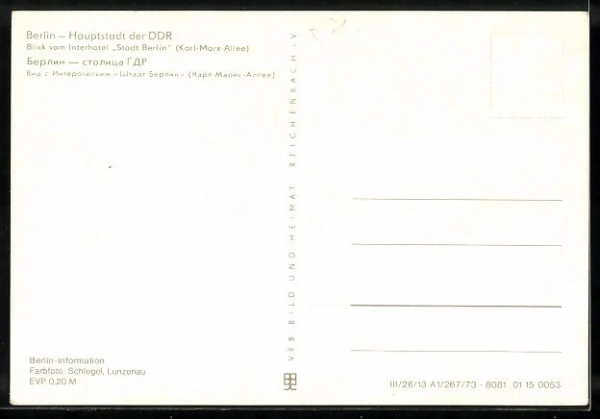 AK Berlin, Blick vom Interhotel Stadt Berlin auf die Karl-Marx-Allee