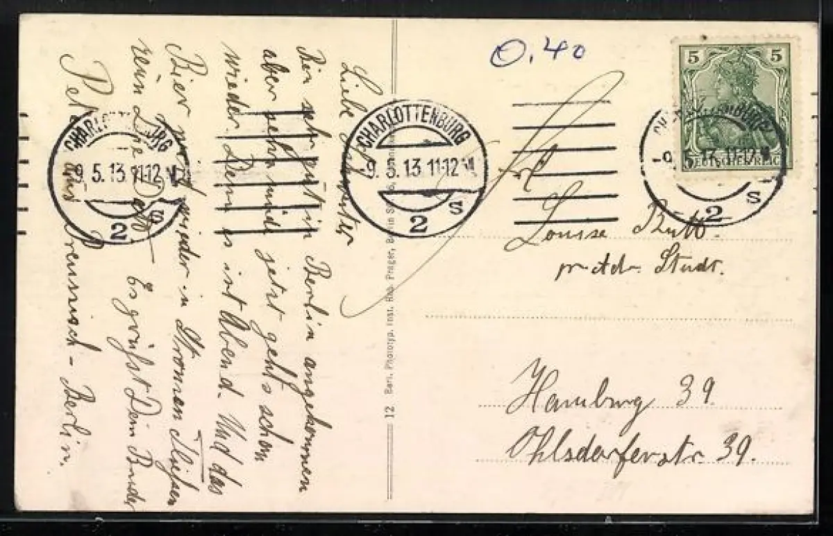 alte Ansichtskarte, gelaufen 1913, Eckknick unten re., Bugspur re. oben, Stempelspur, guter Zustand