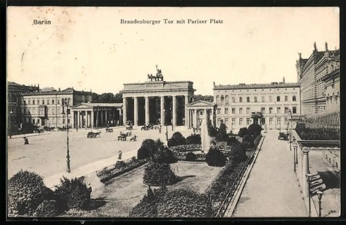 AK Berlin, Brandenburger Tor mit Pariser Platz und Fontäne