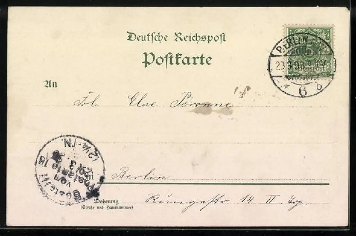 alte Ansichtskarte, gelaufen 1898, Stempelspur, guter Zustand