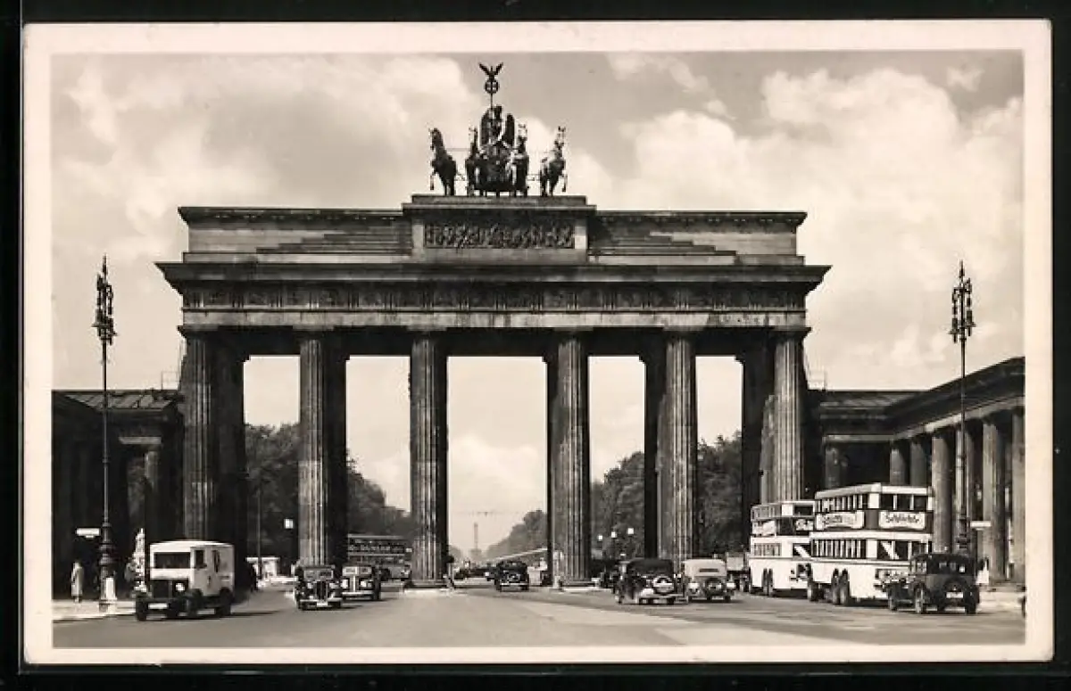 AK Berlin, Brandenburger Tor mit Strassenverkehr