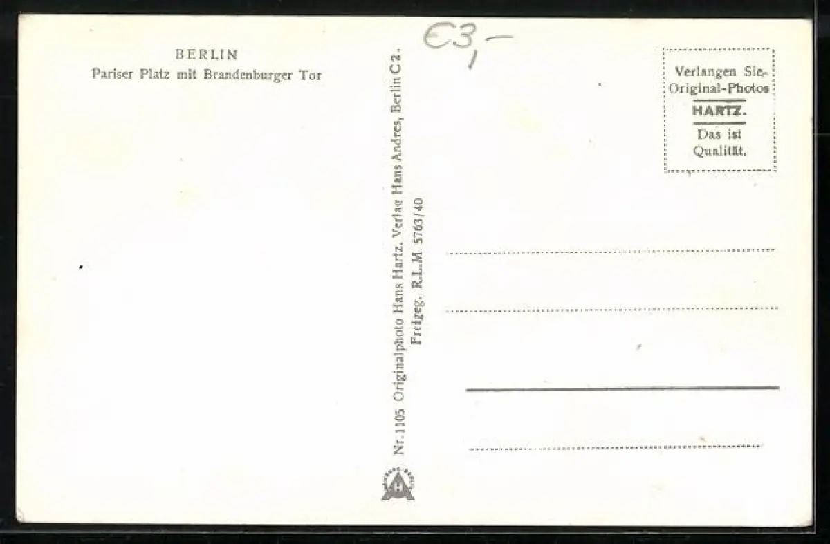 AK Berlin, Brandenburger Tor vom Pariser Platz aus