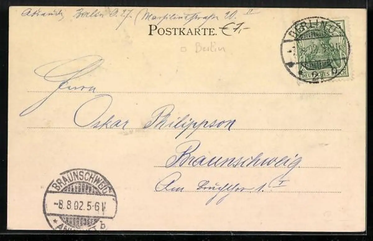 alte Ansichtskarte, gelaufen 1902, Eckknick re. unten, guter Zustand