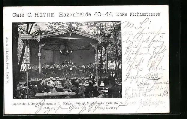 AK Berlin, Café C. Heyne in der Hasenhaide 40-44, Ecke Fichtestrasse
