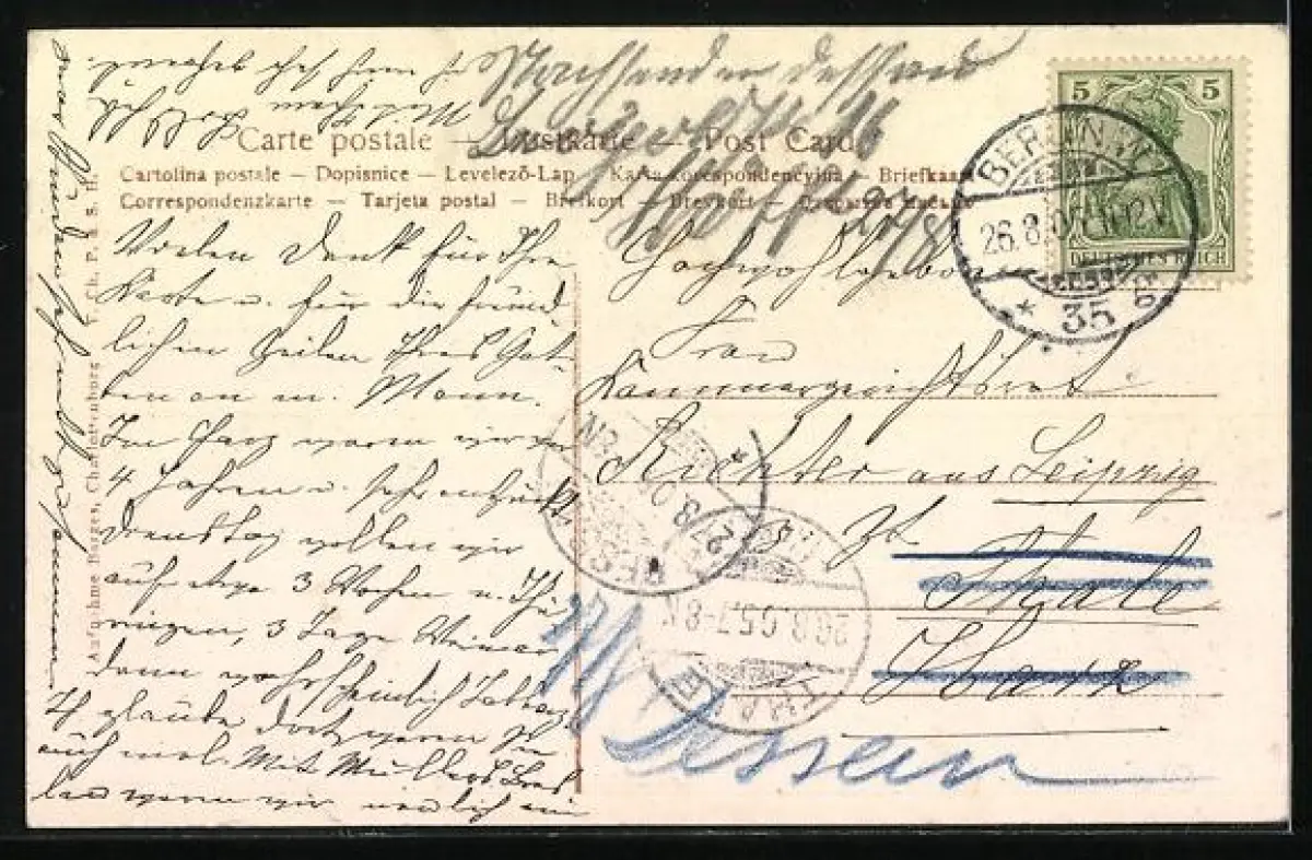alte Ansichtskarte, gelaufen 1905, Stempelspur, guter Zustand