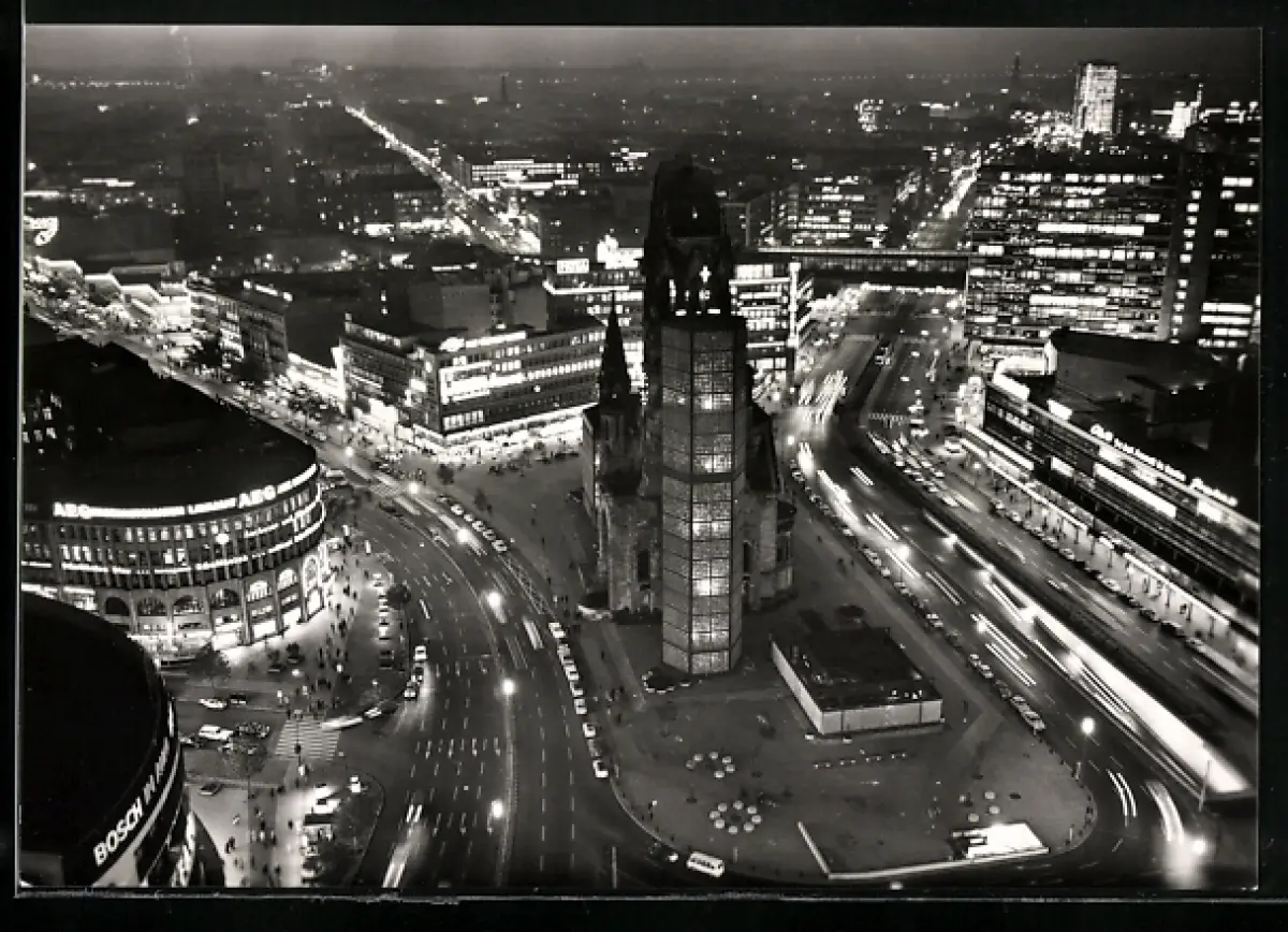 AK Berlin-Charlottenburg, Breitscheidplatz mit Kaiser-Wilhelm-Gedächtniskirche bei Nacht