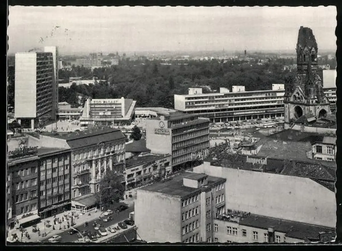 AK Berlin-Charlottenburg, Kaiser-Wilhelm-Gedächtniskirche, Europa-Center, Hotel Imperial