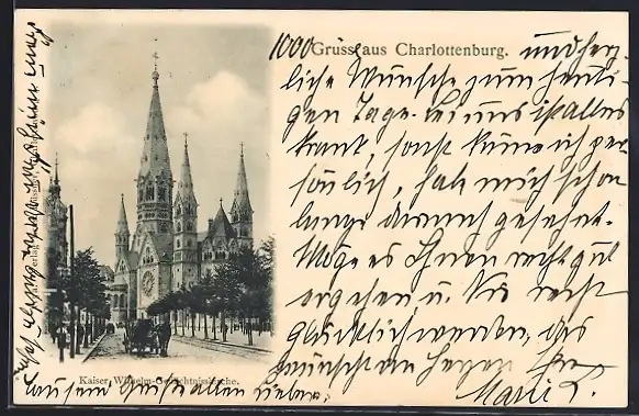 AK Berlin-Charlottenburg, Kaiser Wilhelm-Gedächtniskirche mit Strassenpartie