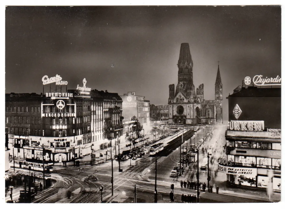 AnsichtskarteBerlin CharlottenburgKu'damm und Kaiser-Wilhelm-GedächtniskircheNachtansichtVersion 2