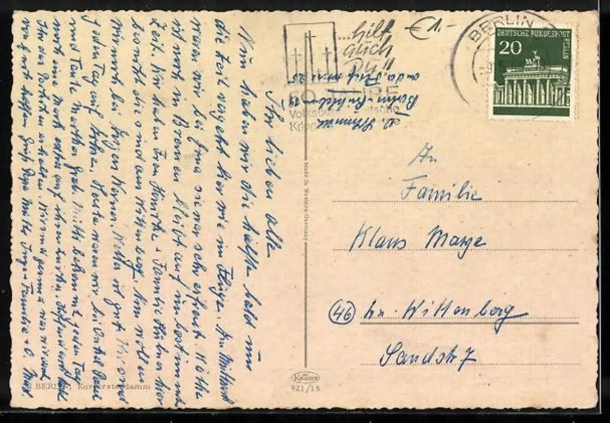 gelaufen 1965, Stempelspur, leichter Eckknick li. oben, guter Zustand