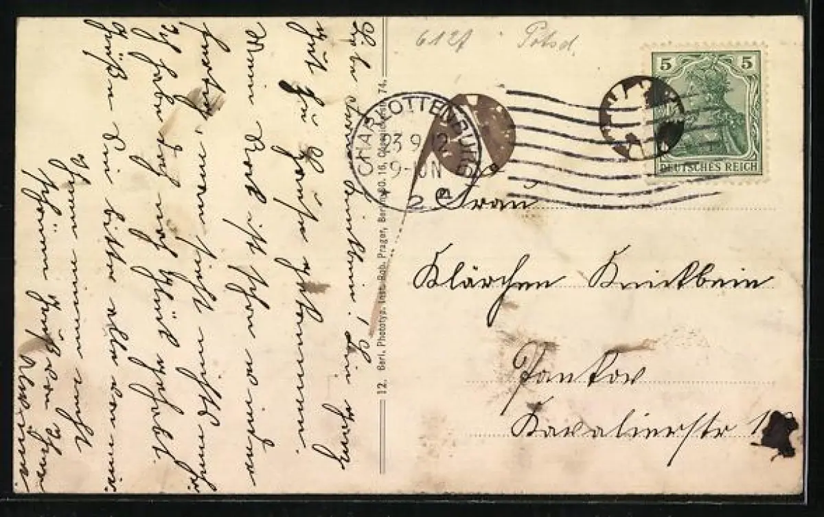 alte Ansichtskarte, gelaufen 1912, Stempelspur, guter Zustand