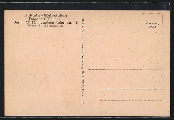 AK Berlin-Charlottenburg, Restaurant Kakadu-Weinstuben, Inh. Dagobert Tichauer, Joachimsthaler Str. 10