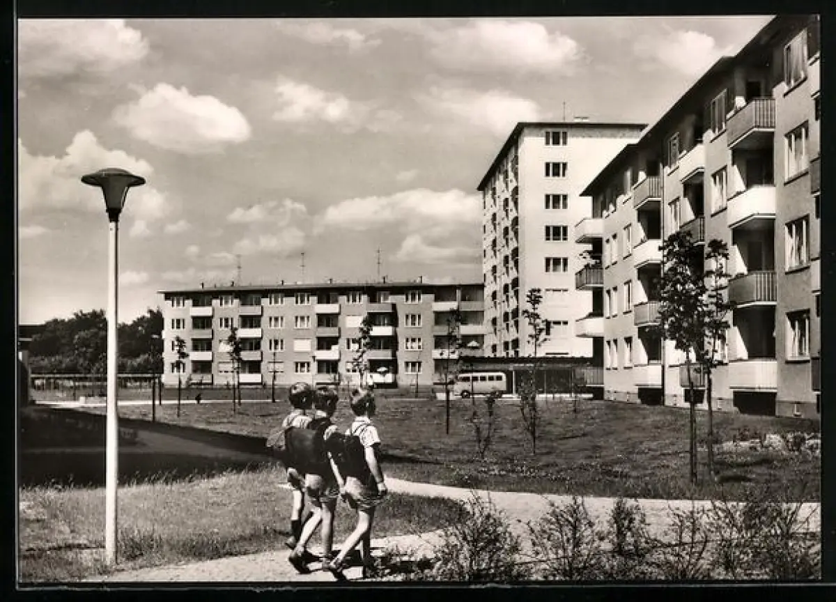 AK Berlin-Charlottenburg, Siedlung Charlottenburg-Nord, Schuljungen mit Tornistern, Ortspartie