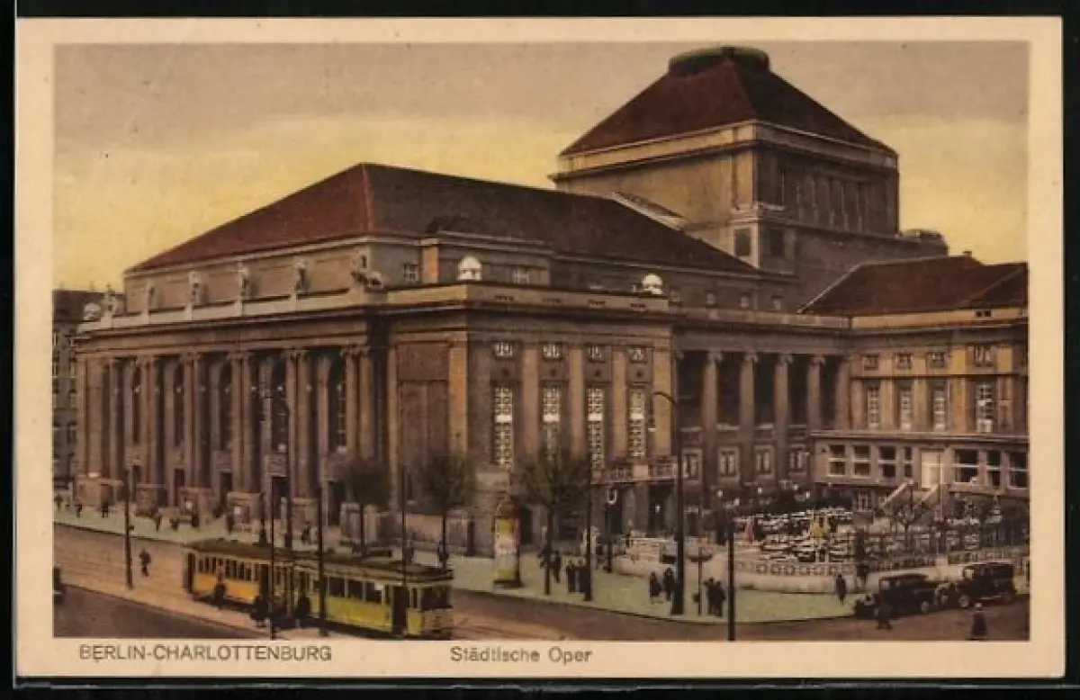 AK Berlin-Charlottenburg, Städtische Oper mit Strassenbahn