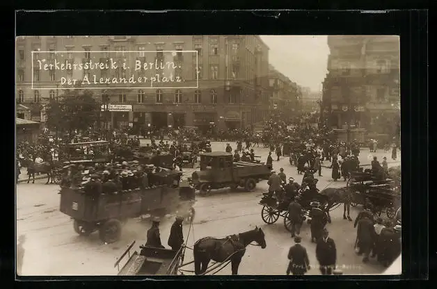 AK Berlin, Der Alexanderplatz währende des Verkehrsstreik, Arbeiterbewegung