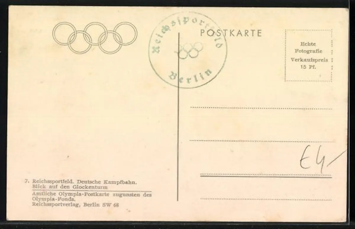 AK Berlin, Deutsche Kampfbahn mit Blick auf den Glockenturm