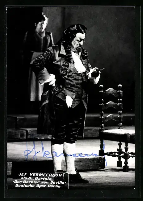 AK Berlin, Deutsche Oper, Opernsänger Jef Vermeersch als Dr. Bartolo in Der Barbier von Sevilla, Autograph