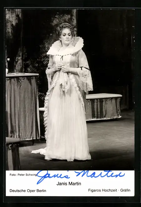AK Berlin, Deutsche Oper, Opernsängerin Janis Martin als Gräfin in Figaros Hochzeit, Autograph
