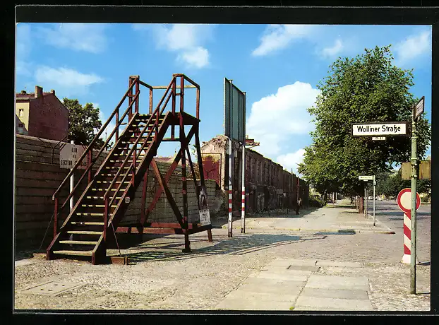 AK Berlin, Die Mauer an der Bernauer Strasse, Ecke Wolliner Strasse