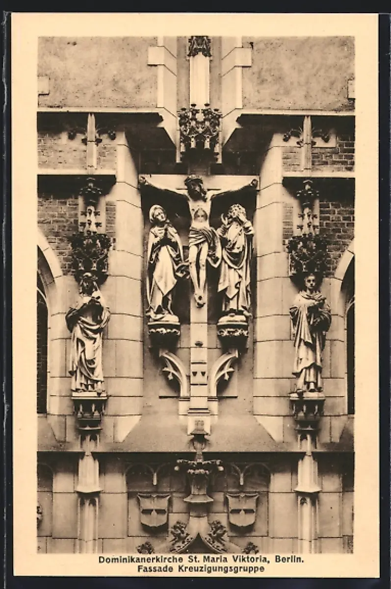 AK Berlin, Dominikanerkirche St. Maria Viktoria, Karlstr. 29, Fassade Kreuzigungsgruppe