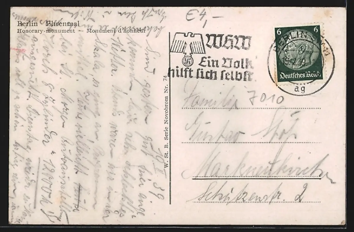 alte Ansichtskarte, gelaufen 1939, Eckknick unten rechts, guter Zustand