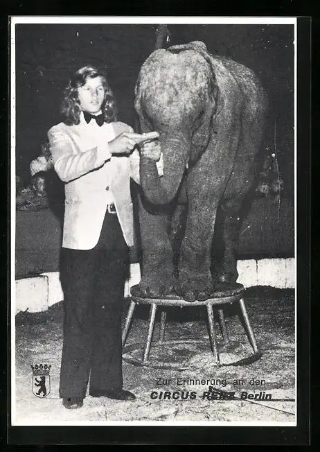 AK Berlin, Erinnerung an Zirkus Renz, Zirkus-Darsteller mit Elefant