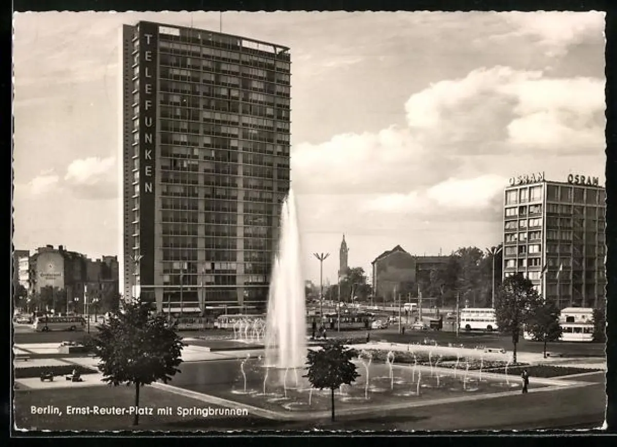 AK Berlin, Ernst-Reuter-Platz mit Telefunkenhaus u. Springbrunnen