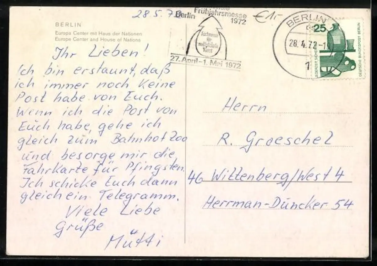alte Ansichtskarte, gelaufen 1972, Stempelspur, guter Zustand