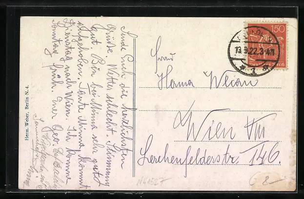 alte Ansichtskarte, gelaufen 1922, Stempelspur, Eckknick li. oben, guter Zustand