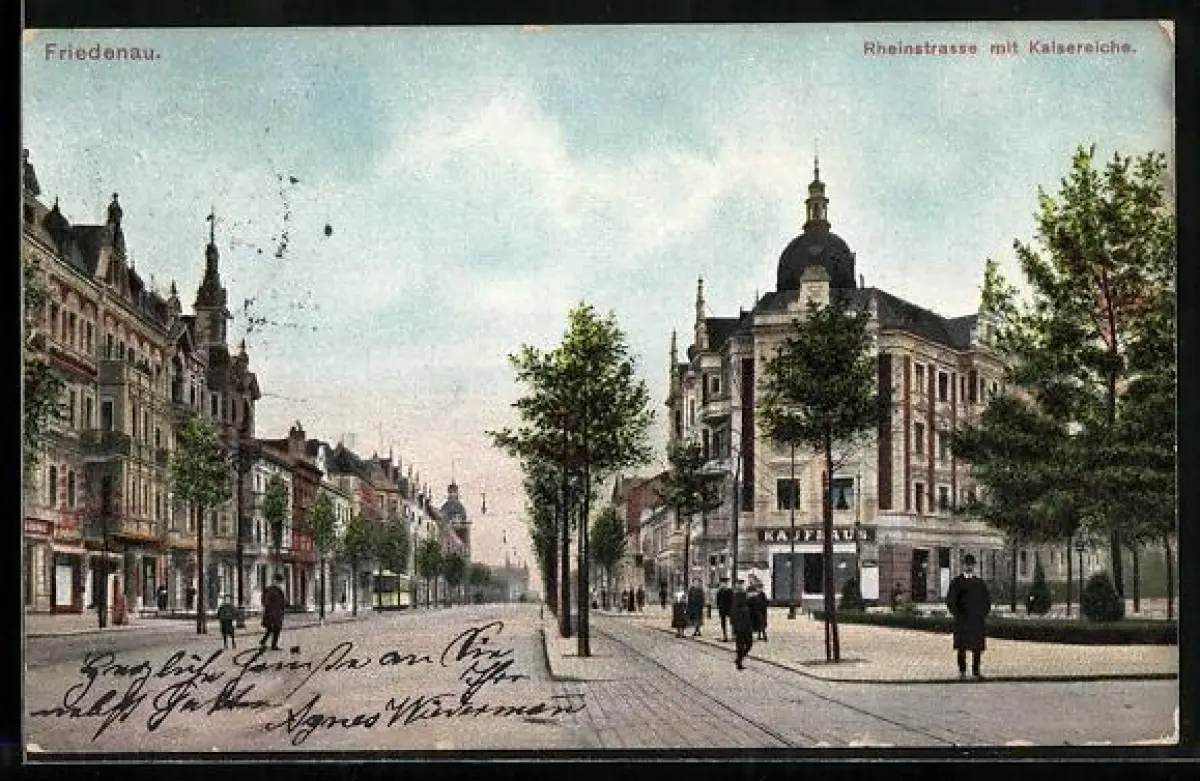 AK Berlin-Friedenau, Rheinstrasse mit Kaisereiche, Strassenbahn, Abzweig