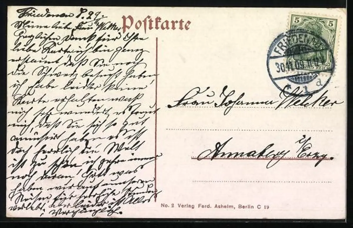 alte Ansichtskarte, gelaufen 1909, AbriebspurenEcken u. Rand unten, Stempelspur, guter Zustand