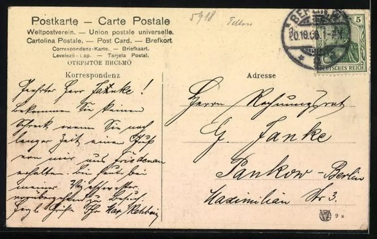 alte Ansichtskarte, gelaufen 1906, Stempelspur, guter Zustand