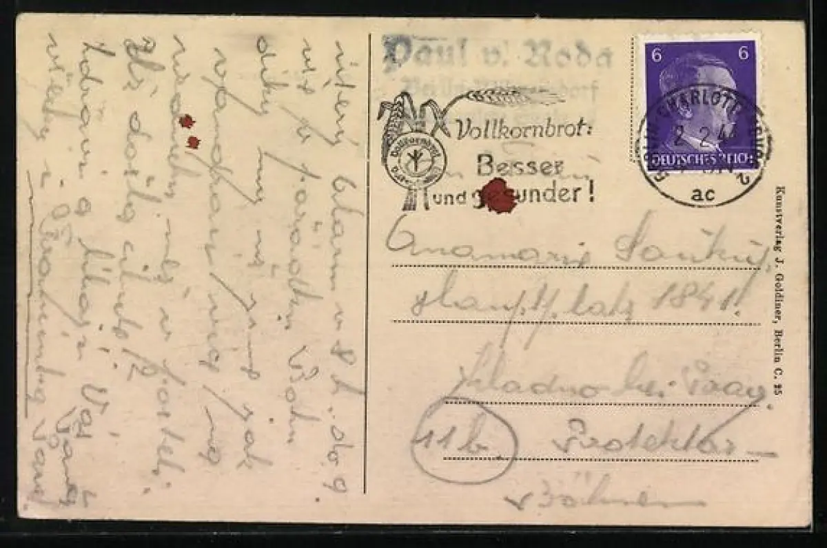 alte Ansichtskarte, gelaufen 1944, Eckknicke unten, minimaler Einriss re. oben, guter Zustand