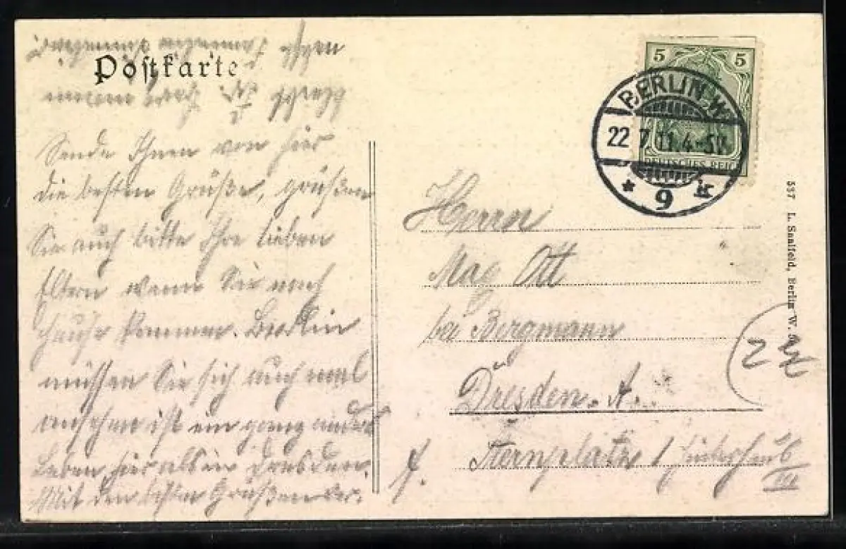 alte Ansichtskarte, gelaufen 1911, Stempelspur, guter Zustand