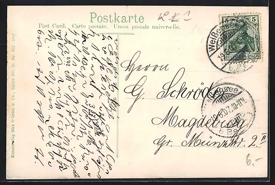 alte Ansichtskarte, gelaufen 1907, Stempelspur, guter Zustand