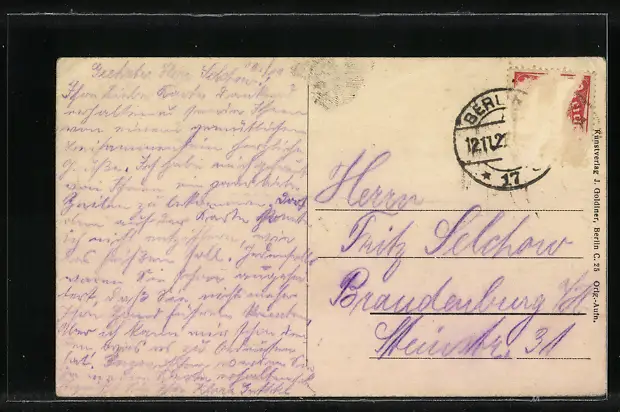 alte Ansichtskarte, gelaufen, Briefmarke entfernt, rückseitig Oberflächenschaden, Eckknick unten li., guter Zustand