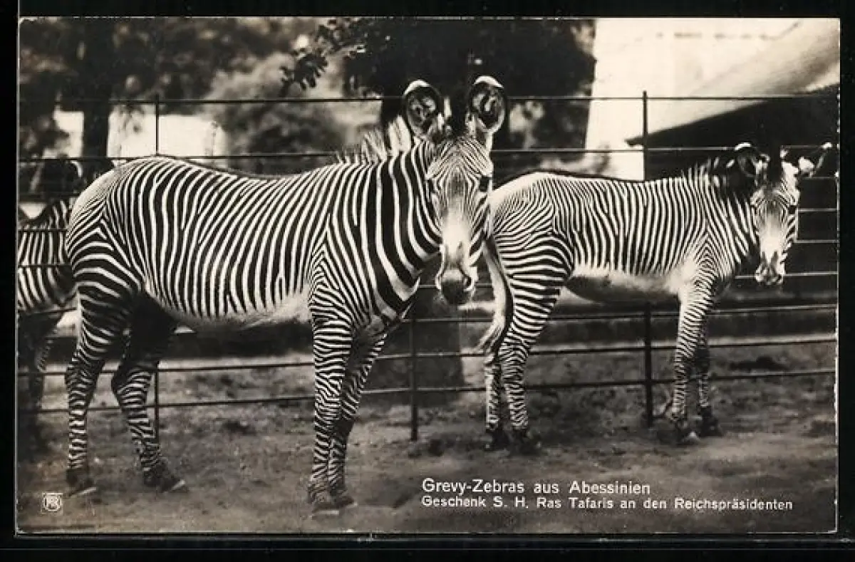 AK Berlin, Grevy-Zebras aus Abessinien, Geschenk S.H. Ras Tafaris an den Reichspräsidenten