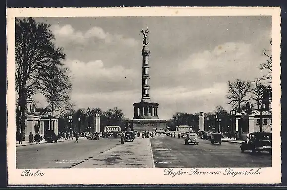 AK Berlin, Grosser Stern mit Siegessäule und Strassenverkehr