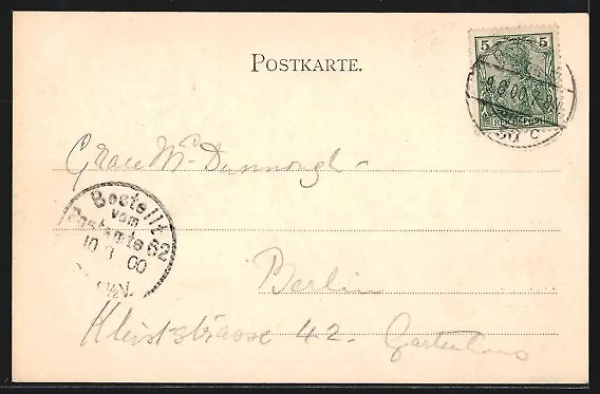alte Ansichtskarte, gelaufen 1900, Eckknick li. oben, guter Zustand
