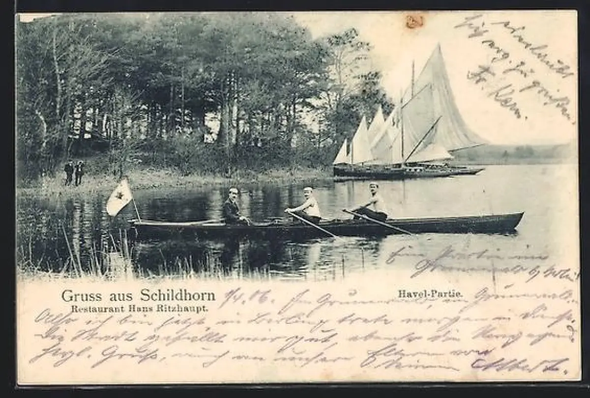 AK Berlin-Grunewald, Schildhorn, Havel-Partie, Restaurant Haus Rütshaupt